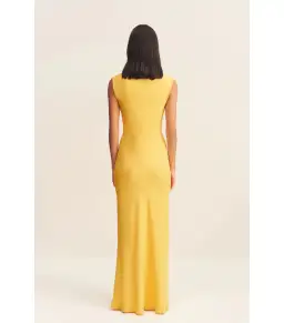 Sleeveless maxi dress in sunflower in a soft matte satin-back crepe.