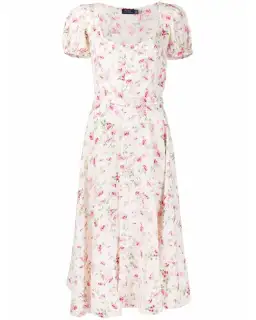 POLO Ralph Lauren Women's Midi Dress Linen Floral Sweet Pea Garden Party