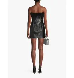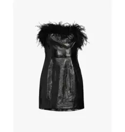 Kitri Poppy Vinyl and Feather Mini Dress Black Size AU 6