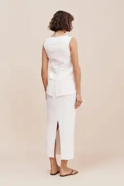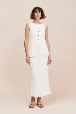Classic and chic, the Emma Vest is a POSSE piece you'll find yourself reaching for time and time again. It features an elegant high neckline, scooped hem, centre front buttons and an adjustable buckle at the back. Wear yours as a set with the matching Emma Pencil Skirt or style it with your favourite denim jeans.