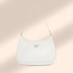 Prada Cleo Brushed Leather Shoulder Bag in Chalk
