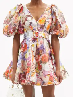 Zimmermann Prima Balloon Sleeve Belted Mini Dress Floral Size 1 / Au 10