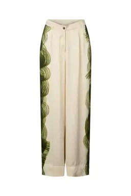 Rabens Saloner Magny Swirl String Elastic Cami and Briana Swirl Pleat Wide Pant Set in Olive Chalk Combo Size AU 10