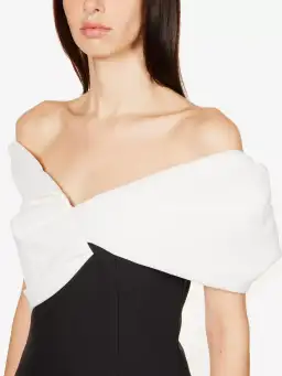 Shaped to a frame-skimming silhouette, it’s fitted with an internal corset and stitched with an asymmetric neckline that artfully exposes your décolletage. It’s a dress undoubtedly destined for your next soirée.