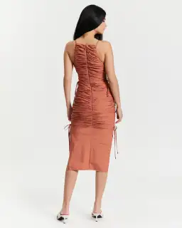 Ruched pleated satin; cotton-lined; mid-weight