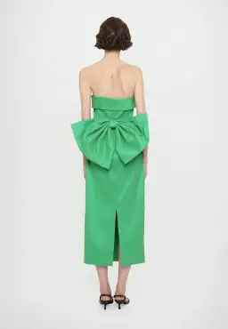 The gorgeous Green Rachel Gilbert Birdie dress is perfect for your next event. This strapless number has a fold-over neckline and is shaped to a column cut. It’s tied with an adorable bow at the back for the perfect dose of drama that’ll spark smiles.