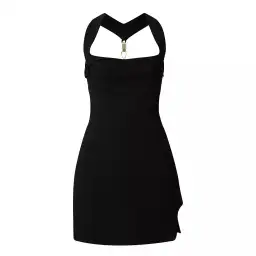An update to the best-selling style the Blaine Mini features an internal corset and a halter neckline with a gold metal open back detail. - Mini dress- Gold metal detailing- Dry Clean Only-