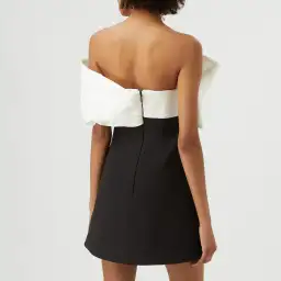 A signature mini, the Kace Mini dress features a soft textured bow draped across a strapless silhouette. Cut to a flattering a-line shape designed as a subtle statement.