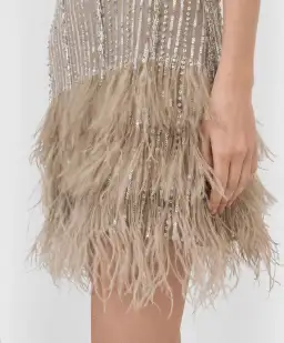 Australian womenswear designer Rachel Gilbert combines contemporary design with meticulous attention to detail to create covetable collections that redefine sartorial luxury. Rediscover the art of dressing up in the decadently embellished Kenzi Mini Dress, replete with a feathered hemline reminiscent of flapper-era glamour.