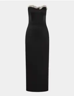 The Lorna Dress features a sleek column silhouette, adorned with a hand-embellished and draped trim across the bust for a touch of elegance. Crafted with an internal waist corset and waist tapes, it provides excellent shape and support, enhancing the wearer’s natural figure. Made from satin crepe with a light sheen, this gown has a luxurious finish with minimal stretch, offering a flattering and structured fit. Perfect for formal events, this piece combines timeless sophistication with delicate, modern details.