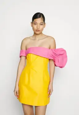 Rachel Gilbert Manuela Dress Yellow/Pink Size 8