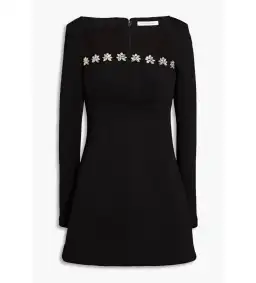 Featuring soft embellished details, the Stella Mini is the quintessential little black dress for the season. Featuring long sleeves that hug the shoulder dropping to a square neckline outlined by Rachel Gilbert's signature spangle. Designed as a silhouette to cinch the waist and flatter natural curves.
