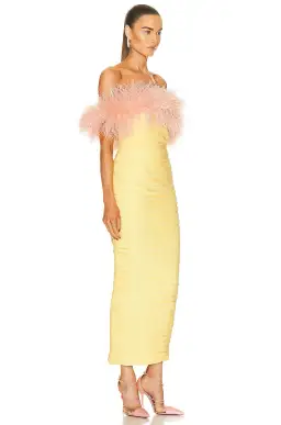 Fitted throughout and falling to a flattering midi-length, the Zion Dress is the perfect combination of feminine and fun. This strapless style features a feather trim across the bust, creating a statement piece for the up-coming events season.