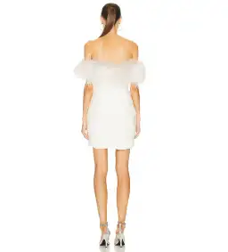 The Zion dress is a strapless mini dress that hugs the body, has a ribbed texture, and small gathers throughout to flatter the body. Its contrast feather trim feature is a conversation starter that can't be ignored.