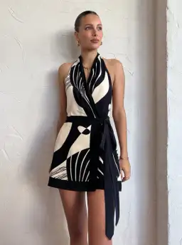 Sir the Label Realisme Wrap Halter Mini Dress Papier Print