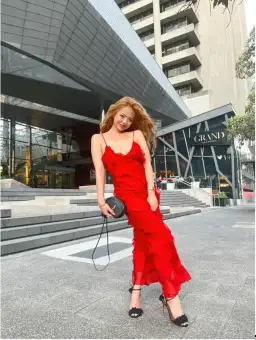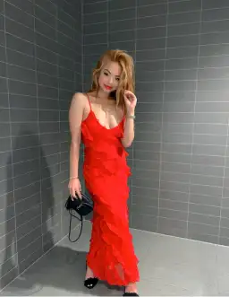 Crafted in a floaty chiffon in a bright scarlet hue; and hitting the sweet spot between elegant and sexy, this eye catcher of a dress will ensure you steal the show all day and night.