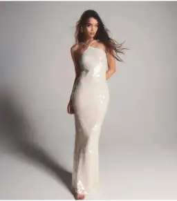 Dripping with thousands of sequin paillettes that capture the light as you move, our high-voltage Emmanuella maxi dress is a scene-stealing disco diva, cut with an elegant diamond neckline.