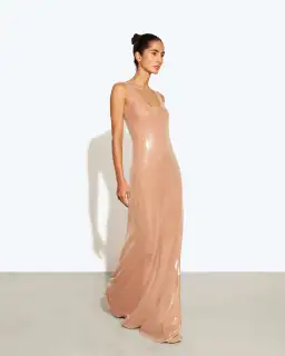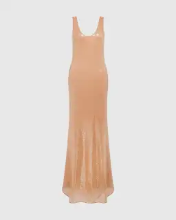 Stunning in its simplicity, Mirage needs no introduction. This recycled mesh scoop neck dress has embroidered with clear sequins that catch the light like sun on water. A soft internal mesh lining is comfortable against the skin.