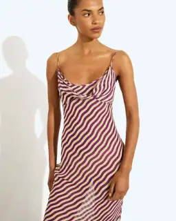 A modern classic with 90s attitude, the Assisi slip is as flawless as it is flattering. Crafted from a daringly sheer georgette, it's printed with striking waves in a rich dark purple and elevated with a double cowl neckline and delicate straps.