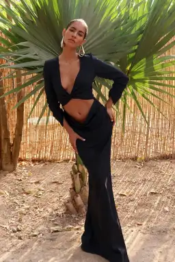 A chic black maxi dress but not as you know it, Costella has a daring cut-out and knotted detailing that makes her anything but ordinary. This dress by Rat and Boa features a back zip fastening, cut out detail at front and side slit.