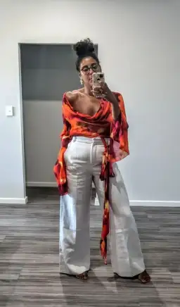 Taking Rat & Boa's signature cowl neck and remixing it into a stand-out blouse, Fantini is conjured in a heat-generating, abstract printed viscose with outsized slit cuffs, wrap-around ties and a sultry, sophisticated air that's made for beach-to-bar dressing.