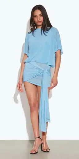 Slinky, sexy and effortlessly easy to wear – Freja is a shot of colour and the perfect 'something blue'. We love to style this tie-waist t-shirt dress with the knot to one side, adjusting it to personalise coverage.