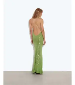 Made to mesmerise, Gaia turns a 90s slip into high-voltage glamour. Drenched in sequins that catch the light and in a fresh shade of green, it skims the body with a cowl neck, low back and barely-there straps.Turn heads with this statement dress, crafted for unforgettable moments.