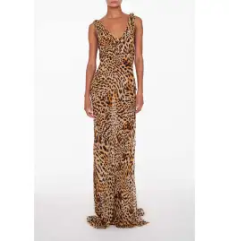 Taking our enduring love of animal print and elevating it with luxury details, the Laviza dress is an ultra-flattering, cheetah print maxi crafted from semi-sheer viscose, with a timeless, sophisticated silhouette that offsets its wild side. A perfectly flawless occasion dress, it blends a floor-skimming shape with a slit skirt, cowl neckline and a low back framed with twist detailing and delicately criss-crossing straps.