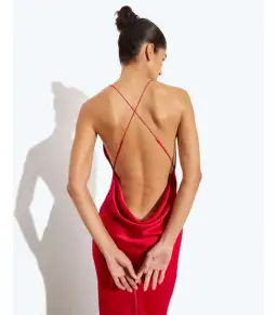 Timeless with a twist. Lotus is our clean and serene red slip dress with sheer diamond mesh panel and criss-cross back straps.