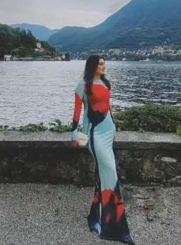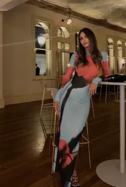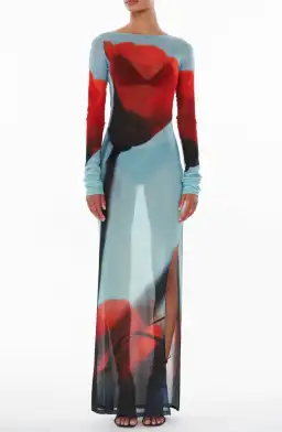 Crafted from a sheer mesh fabric, with its long sleeves and flattering silhouette, the bold blue colour acts as a canvas for the vibrant red tulip print, creating a captivating contrast that demands attention. The slightly revealing nature of the mesh adds a hint of sensuality, allowing your inner confidence to shine through. This dress is a true all-rounder, suitable for a wide range of occasions.