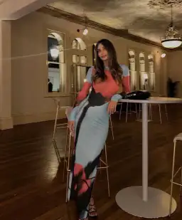 Our Santino dress print has been engineered by our team and placement has been selected by Stephanie & Valentina for maximum impact.