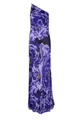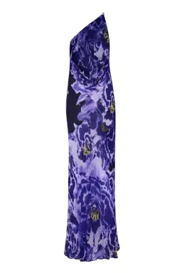 A flawless one-shoulder maxi dress conjured in a bold, purple orchid print. With a slinky, streamlined silhouette, side split detail and our signature cowl back, she's the epitome of printed perfection.