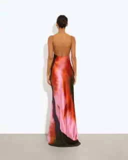 Delicate spaghetti straps and a train compliment a signature floral print that emboldens a classic slip. Cut from sumptuous satin acetate, Solaris falls to perfection.