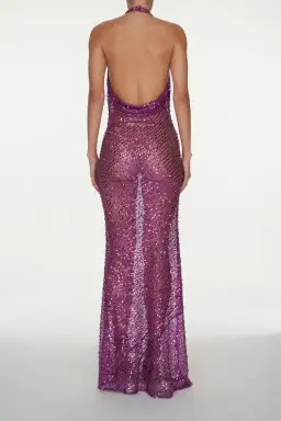 Step into the spotlight with the Verona Dress. Woven with metallic yarn and sparkling sequins in a stunning raspberry hue, it balances allure with elegance