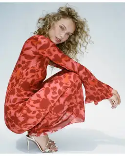 - Original tonal red floral ’Havana’ print designed by Réalisation