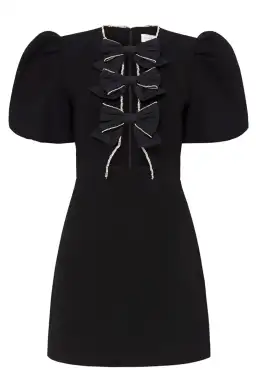 The Katie Bow Mini Dress was designed with a fitted bodice and subtle front cut-outs hidden behind the contrasting taffeta bows. Cut in an A-line skirt and paired with voluminous puff sleeves, this dress is fully lined.