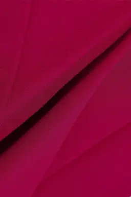 Crepe. Shoulder pads. Open back. Zipped cuffs. Hook and zip fastening at back. Button-fastening keyhole at back. Fully lined. Train hem. Slightly stretchy fabric. Mid-weight fabric.