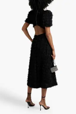 Inspired by New York's Waldorf Astoria in the 1970s, the Cherie Amour Puff Sleeve Midi Dress will turn heads from the moment you enter the room. Designed with a crew neckline and voluminous puff sleeves, it turns to reveal an open back with a circular A-line skirt. Pair yours with nothing but subtle jewellery and strappy heels. Dress is lined.