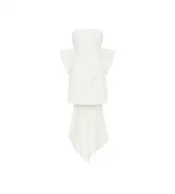 This little white dress is a crowd favourite for ALL bridal events. Hens, engagement, reception dress, you name it. It has a fitted body with an internal support bra, and the statement bow with long tail is made from a thick, structured crepe. This dress is a no-brainer for your special day and welcomes all body shapes.