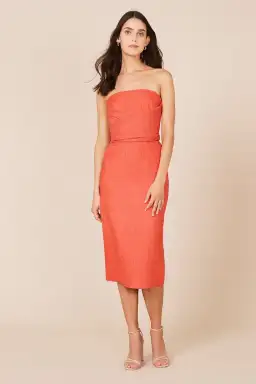 Rebecca Vallance Francesca Tie Midi Dress Coral Strapless Bow Crepe Size 12