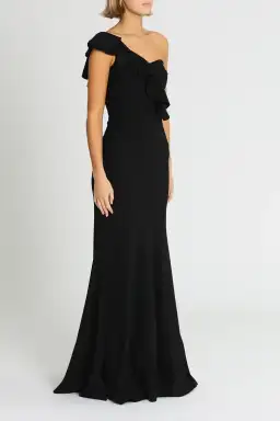 Radiate confidence and make a striking statement in Rebecca Vallance's floor-length gown. With a bold ruffle detail from neckline to waist, this beautiful form-fitted bustier ensures a dramatic entrance. The fit-and-flare silhouette adds versatility to this elegant ball gown, making it an excellent choice for your next formal or black-tie event. Complete with an exposed back zip, asymmetric neckline, and one-shoulder detail, this dress is designed to captivate.
