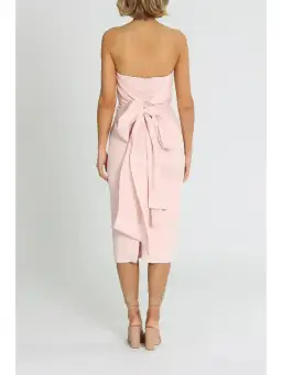 Designed with femininity in mind, the Harlow Dress by Rebecca Valance exudes vibrant tones and summer style. The stretch crinkle fabric molds over the body, creating a flattering and slim silhouette. The back ties offer versatile styling options, allowing you to make this dress your own. Ideal for sipping cocktails and enjoying the sunset, this strapless dress features a tie waist detail and a back leg split.