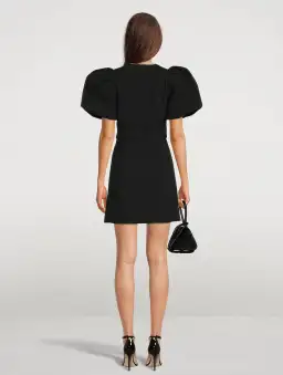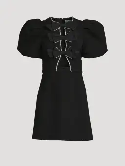 The Katie Bow Mini Dress was designed with a fitted bodice and subtle front cut-outs hidden behind the contrasting taffeta bows. Cut in an A-line skirt and paired with voluminous puff sleeves, this dress is fully lined.