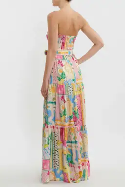 Beautifully crafted from an exclusive border placement print, the Le Mur Rose Maxi Dress is cut in a medium-weight linen blend, designed with a fitted bodice with a shirred bust, side pockets and both removable and adjustable straps for versatility. Style yours with nude strappy heels and your most cherished gold hues. Item fits true to size.