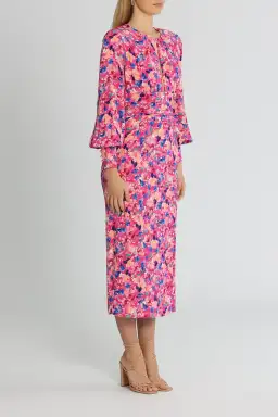 Rebecca Vallance Little Havana Midi Dress Pink Print Size AU 14