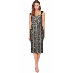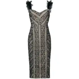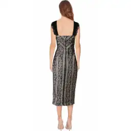 Rebecca Vallance Lou Lou Ruffle Pencil Midi Dress Lace Embroidered Black Size AU 8
