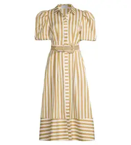 The sophisticated Lucas Shirt Midi Dress is a cotton/silk blend shirt dress with a collared neckline. Thisshirt dress has voluminous puff sleeves, concealed placket, A-line midi skirt and side pockets. The dress is unlined and comes with raffia belt.