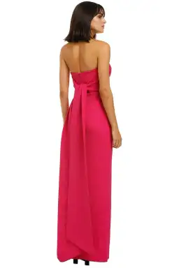 Dazzle like a goddess in this hot pink gown by Rebecca Vallance. With a textured fabric, it boasts a straight neckline and a long floor-length tie at the back for added drama. This classic-shaped gown, complete with internal bra structure, center-back split, and stretch textured fabric, is perfect to rent for any upcoming formal event.