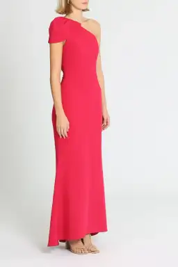 Step into the spotlight with the eye-catching Poppy Gown in a vibrant raspberry red, a striking alternative to the classic black. This floor-length gown boasts contoured A-line panel lines and one-shoulder petal sleeve detailing, creating a universally flattering silhouette. Ideal for a red carpet event or gala evening, this gown is both stylish and easy to wear with its short sleeve drape, fit-and-flare design, and rear zip fastening.