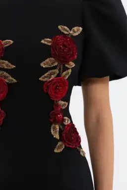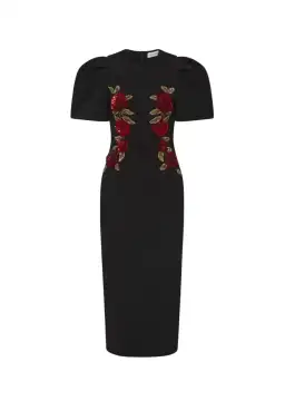 The Rosetta Midi Dress epitomises timeless elegance and modern glamour, featuring enchanting floral sequin embellishments. Tailored from bonded crepe, the voluminous short puff sleeves and rounded neckline effortlessly complement the fitted silhouette, accentuated with princess seams to flatter the figure. Cinched at the waist, the pencil midi skirt is enhanced with a back split for added style and ease of wear. Complete with a zip fastening at the back and lining, this dress is a stunning choice for your next special event.